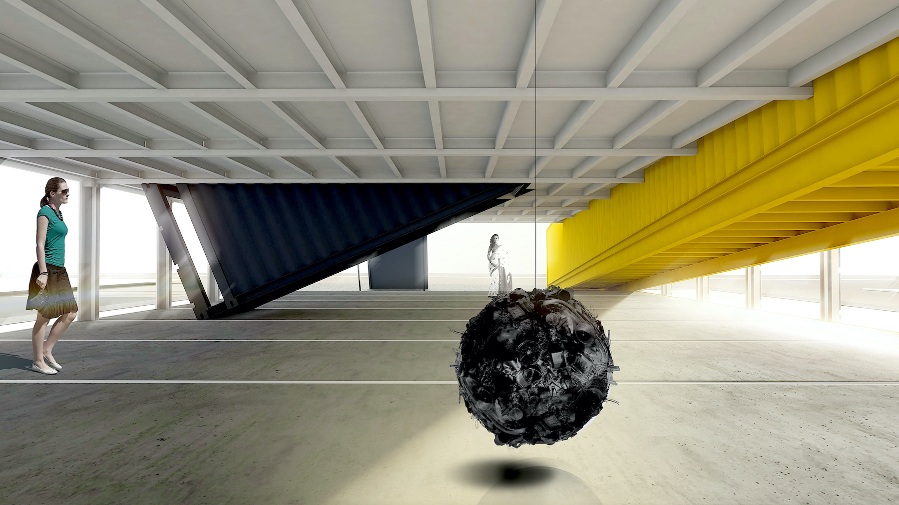 The architecture is deliberately plain with colors, since the surrounding exterior, the in-progress artwork and exhibits already display so many. Yellow with nuances of grey accent the building placed on an epoxy resin mirror.