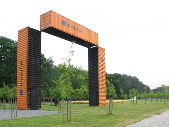 Originally planned to be a spectacular ephemeral work in 2017 (during the festivities of the 500 years of the city of Le Havre), these two arches of containers are being definitively installed on the Quai de Southampton in Le Havre, France.